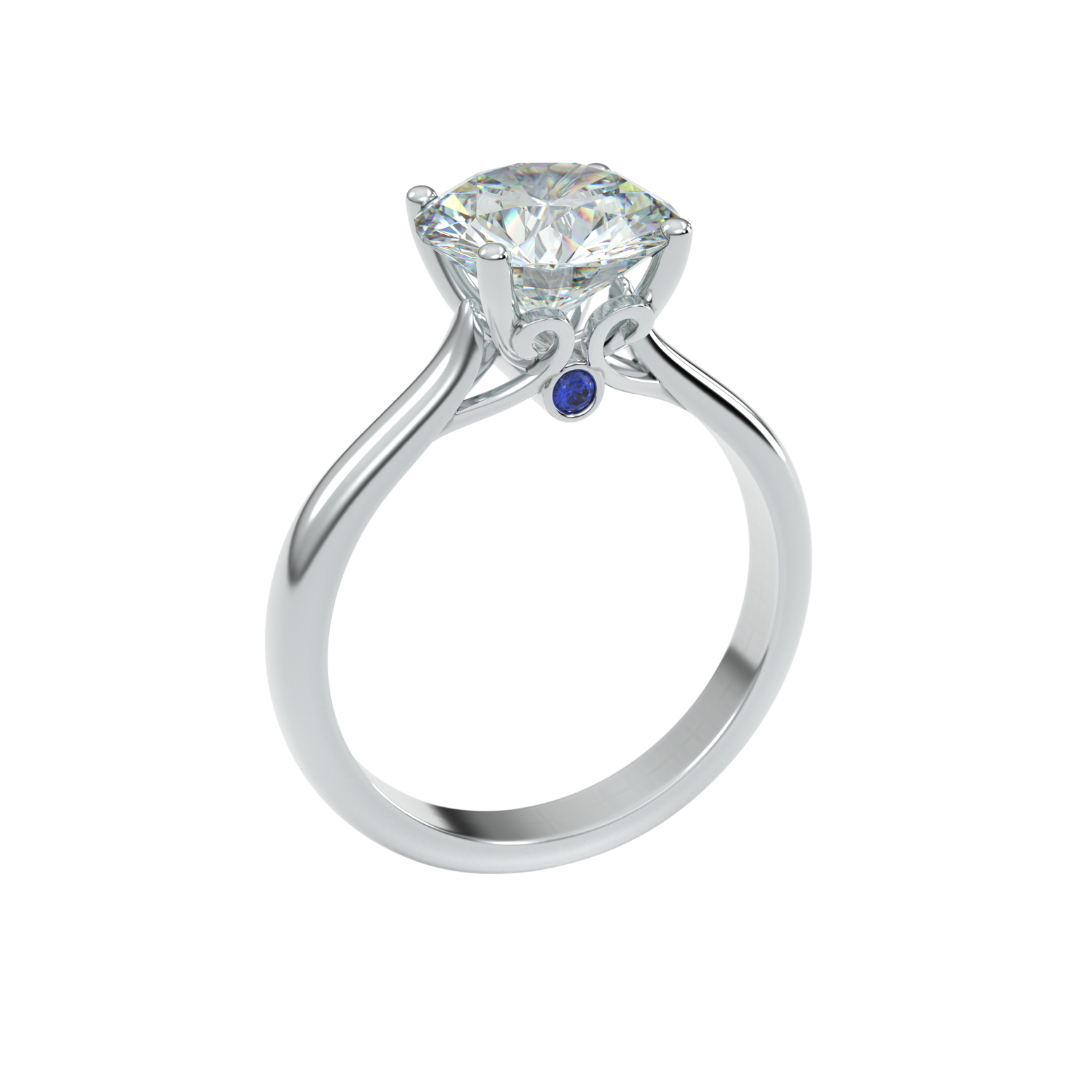 Für CAREDIAMONDS habe ich ihm ein besonderes Detail hinzugefügt: einen kleinen blauen Saphir, als Symbol für Liebe und Neuanfang.